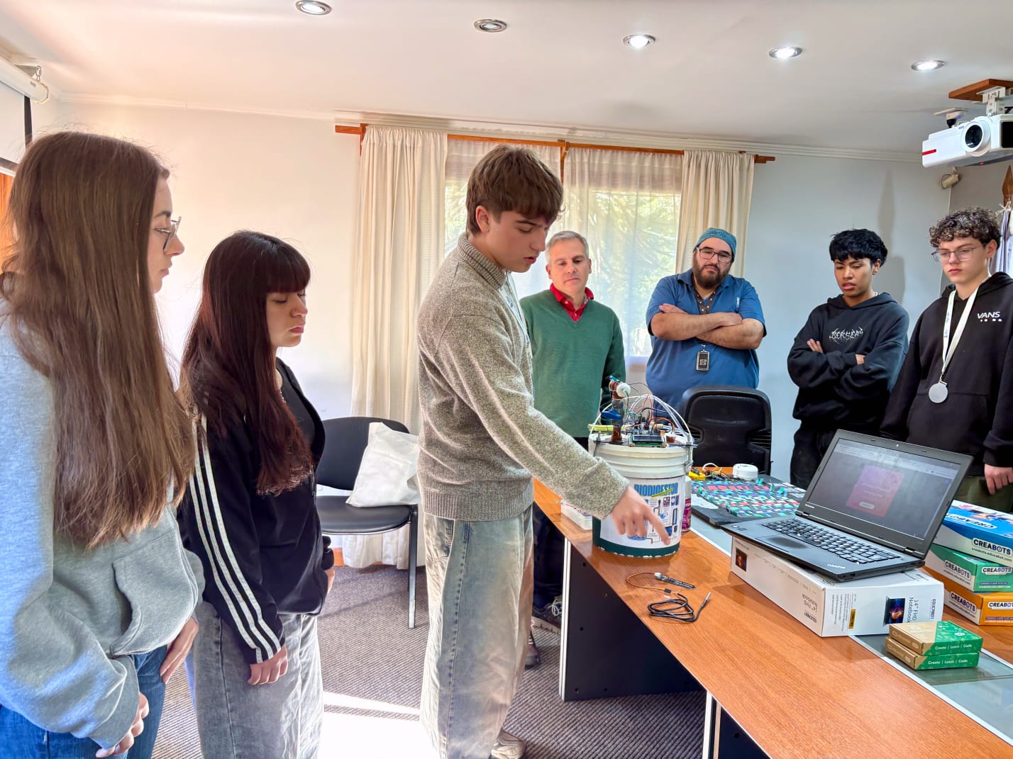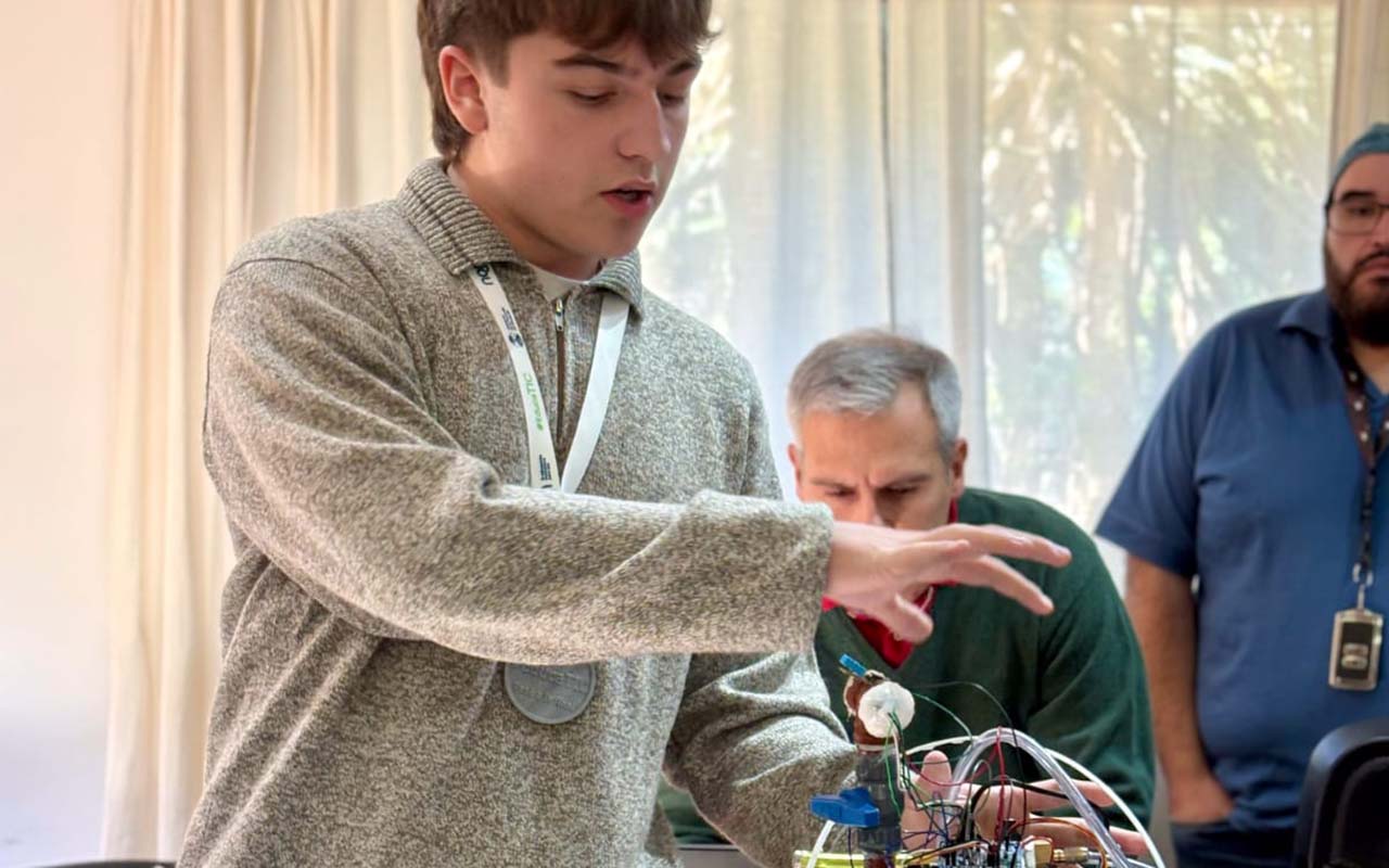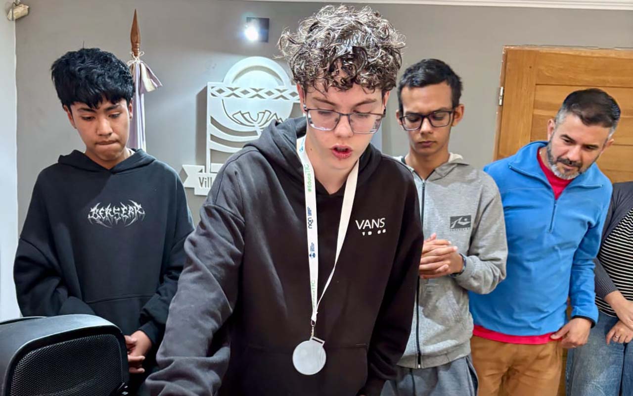 Los estudiantes de 3er año: Francesca Simonetti, Juan Emilio Vogelius y Sofía Antonella Aburto, fueron los responsables del proyecto ganador, y contaron con la colaboración de los estudiantes Ezequiel Baumgartner, Iñaqui Ortega Pasos y Tito Villaroel, junto con los docentes Sebastián Andrés y Flavio Simonetti, quienes guiaron el proceso de investigación, desarrollo y puesta a punto del prototipo.