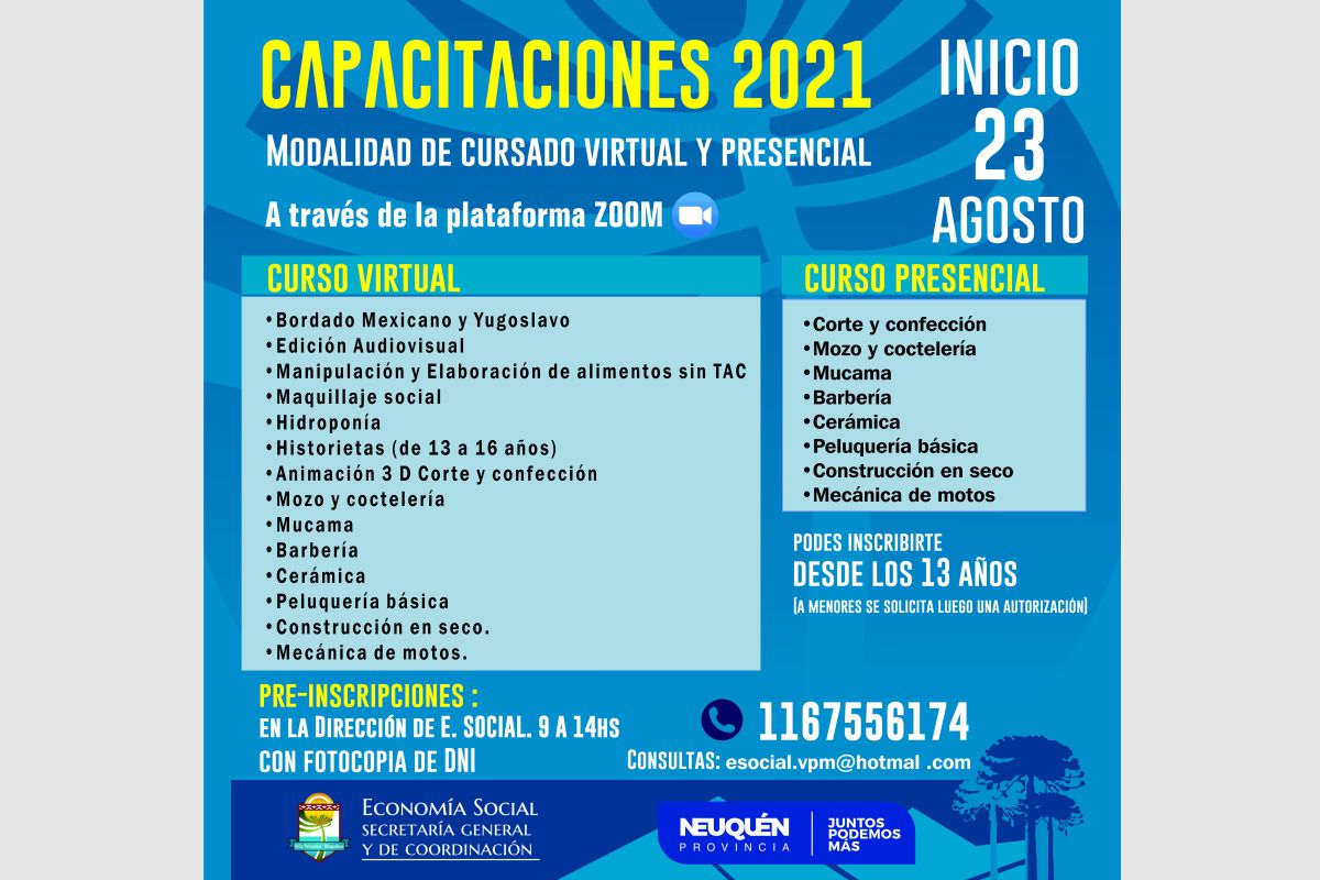 A través de un convenio firmado por el intendente Sandro Badilla con la Dirección Provincial de Coordinación de Capacitación Comunitaria, del...