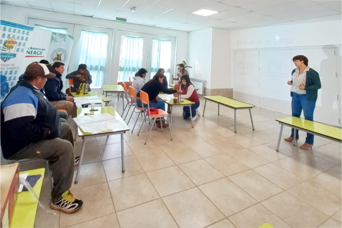 Participaron de la capacitación la intendenta a cargo, Carmen Cordero, el presidente del concejo deliberante, Lucas Sandoval, la Directora de Ambiente municipal, Laura Gómes, funcionarios municipales, vecinos y vecinas de la localidad.