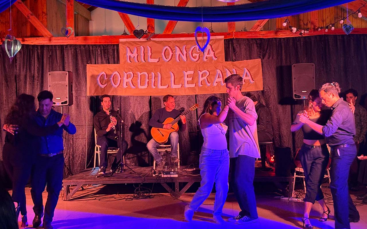 La Milonga Cordillerana reúne a diversos artistas y público para disfrutar de una propuesta distinta y cálida. Una parrilla de lujo: Fernando de Luca, Mirta Trillo, Florencia Destéfanis, Carlos Montoya artista plástico, Pepa Pascal y Sobre 'l Pucho deleitaron a los presentes con un repertorio de música y danza que incluyó clases de tango a cargo de la profesora Carolina Herrena.