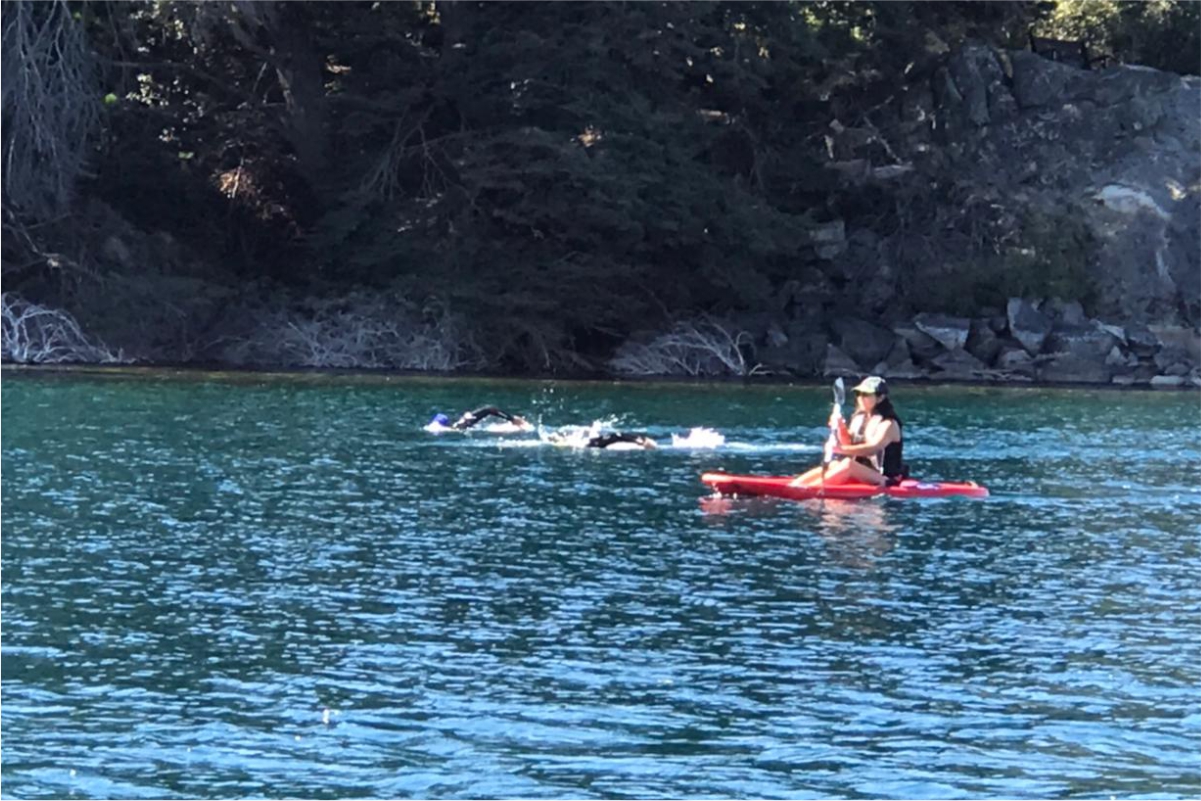 Organizado por la Dirección de Deportes de la Minicipalidad de Villa Pehuenia Moquehue y a cargo de Sebastián kopfque. Los talleristas recorrieron 1.500 metros a nado.
