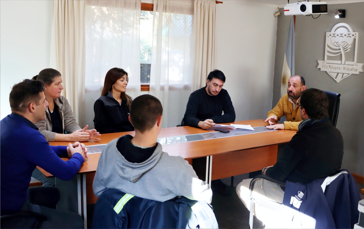 El Intendente de Villa Pehuenia Moquehue, Arturo de Gregorio, recibió a directivos y personal de la Cooperativa Cotesma en una reunión para...